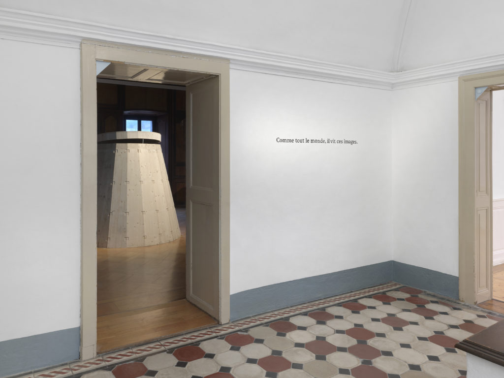 Ces deux structures en bois d’épicéa sont les moules qui ont permis la construction des pâtés de terre se trouvant à l’extérieur du Manoir, dont ils ont gardé la trace. Leur forme rappelle des seaux de plage surdimensionnés ou par glissement formel des capsules spatiales, ou encore des sirènes d’urgence.